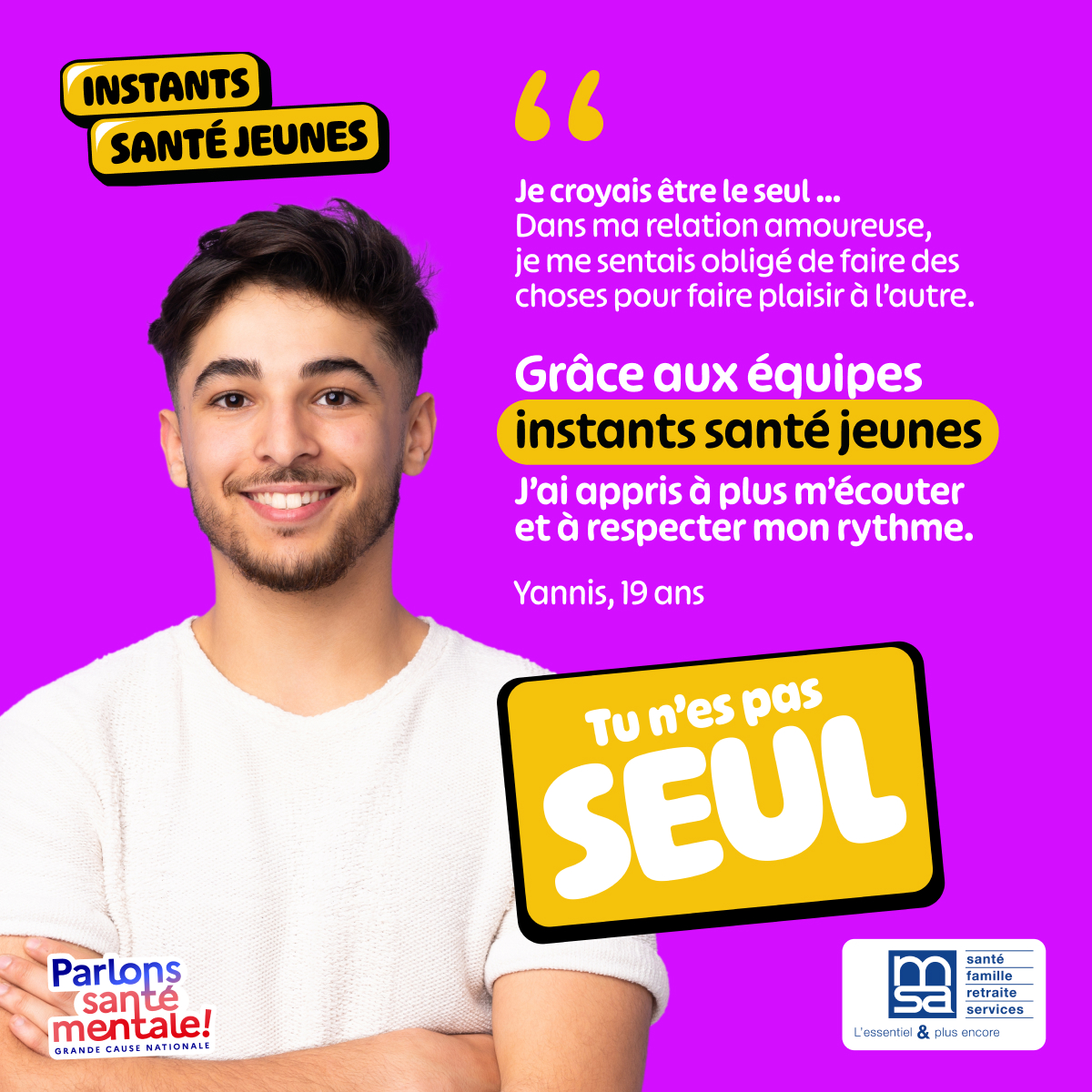 Avec Instants Santé Jeunes, si tu es adhérent à la MSA et que tu as entre 16 et 24 ans, tu peux bénéficier d'un coaching gratuit de 30 mn pour trouver des solutions concrètes à ce que tu traverses.